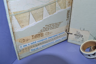 В работе использовала бумагу Graphic 45, MF, Echo Park и другие, декоративный скотч, полужемчужины и сердечки, много штампов, металлические украшения и много декоративных деталей, каждая страницы альбома отстрочена на машинке, альбом собран на кольца.